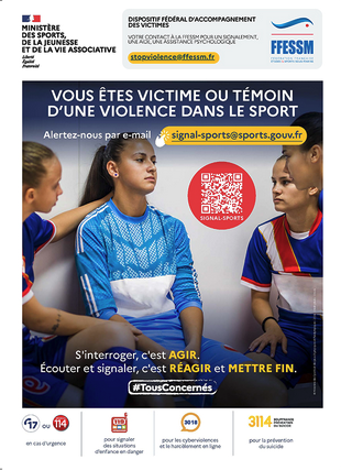 Vous êtes victime ou témoin d'un événement ou comportement pouvant porter atteinte à autrui (violences sexuelles, violences physiques, harcèlement, discrimination, radicalisation...) ou contraire aux valeurs sportives (dopage, corruption,...) intervenu dans le cadre de votre pratique sportive ? Effectuez un signalement